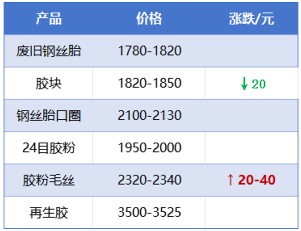 11月29日,橡膠市場(chǎng)呈現(xiàn)分化態(tài)勢(shì)。膠塊價(jià)格下滑20元至1820元/噸,而膠粉毛絲則逆勢(shì)上揚(yáng)20-40元,至2320-2340元/噸區(qū)間。其余再生膠產(chǎn)品價(jià)格保持相對(duì)穩(wěn)定。廢舊輪胎加工行業(yè)下游需求持續(xù)疲軟,市場(chǎng)成交清淡,價(jià)格呈現(xiàn)弱勢(shì)下跌趨勢(shì)。隨著天氣逐漸轉(zhuǎn)冷,產(chǎn)品出貨速度放緩,但原料供應(yīng)同樣減少,導(dǎo)致市場(chǎng)價(jià)格陷入僵持狀態(tài)。