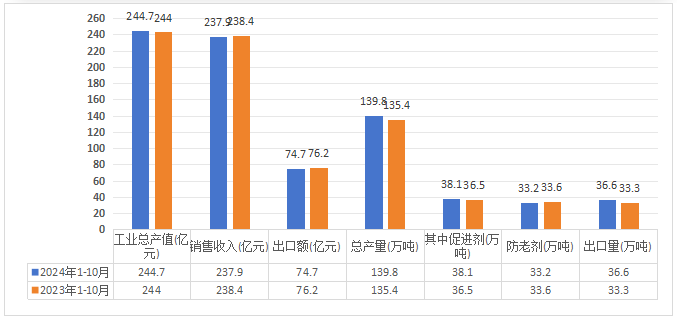 橡膠助劑 | 2024年1-10月總產(chǎn)量139.8萬噸!同比增長3.2%