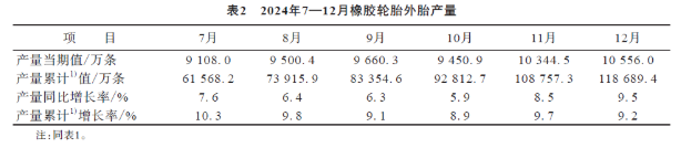 12月份,我國橡膠輪胎外胎產(chǎn)量為10556.0萬條,同比增長率為9.5%;1—12月累計產(chǎn)量為11.87億條,累計增長率為9.2%。