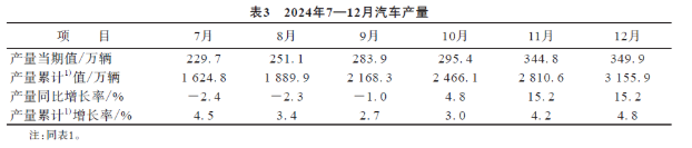 12月份,我國汽車產(chǎn)量為349.9萬輛,同比增長率為15.2%;1—12月累計產(chǎn)量為3155.9萬輛,累計增長率為4.8%。