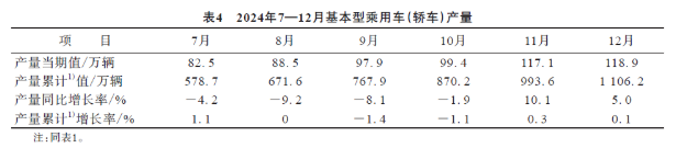 12月份,我國轎車產(chǎn)量為118.9萬輛,同比增長率為5.0%;1—12月累計產(chǎn)量為1106.2萬輛,累計增長率為0.1%。