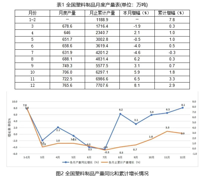 圖1 近年我國塑料制品產(chǎn)量及增長率