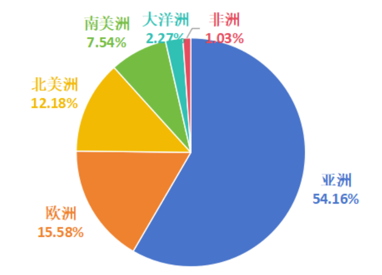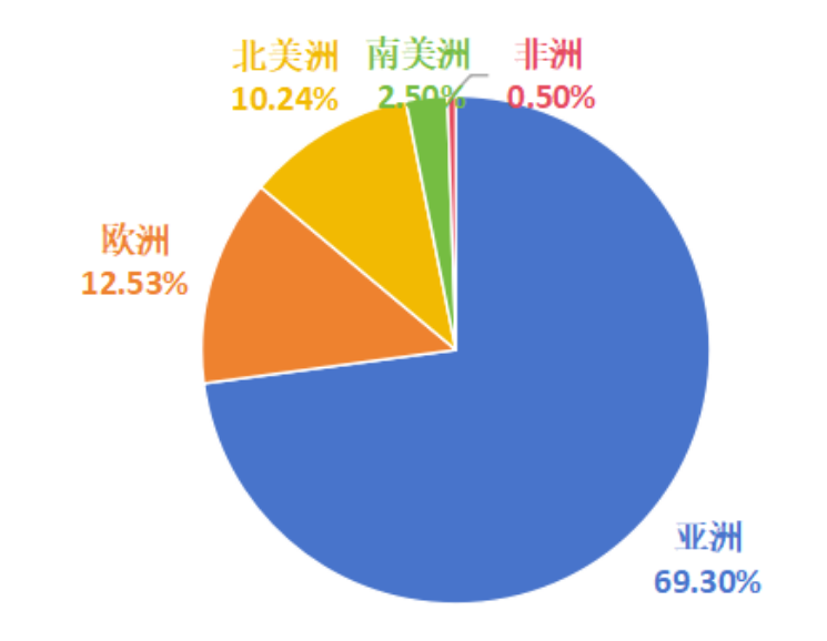 —促進劑共出口到110多個國家地區(qū),其中前30個國家地區(qū)出口量占比為92.8%,亞洲、歐洲、北美洲出口量占比為81.9%。