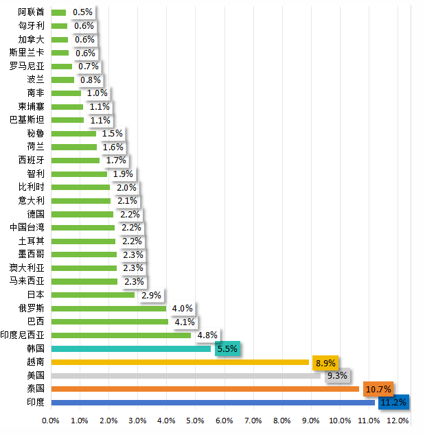 2促進劑出口前30國家地區(qū)