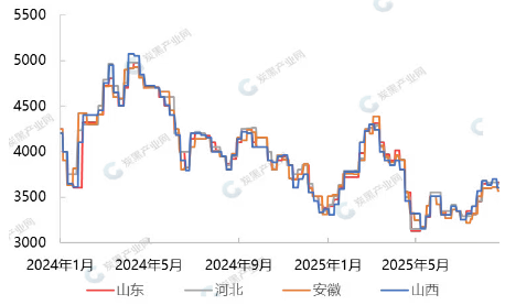 2024-2025年主流區(qū)域煤焦油價格走勢圖