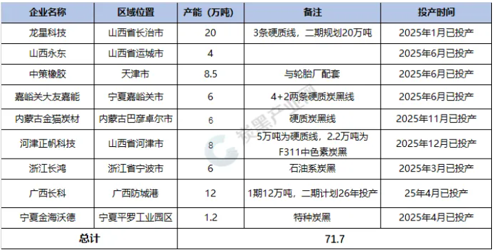 01 2025原生炭黑項目投產(chǎn)匯總