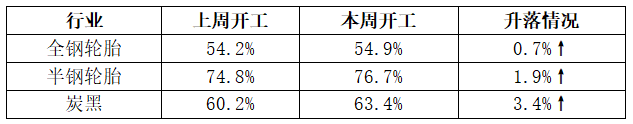 輪胎及炭黑行業(yè)開工情況統(tǒng)計表