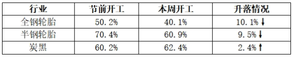 輪胎及炭黑行業(yè)開工情況統(tǒng)計(jì)表