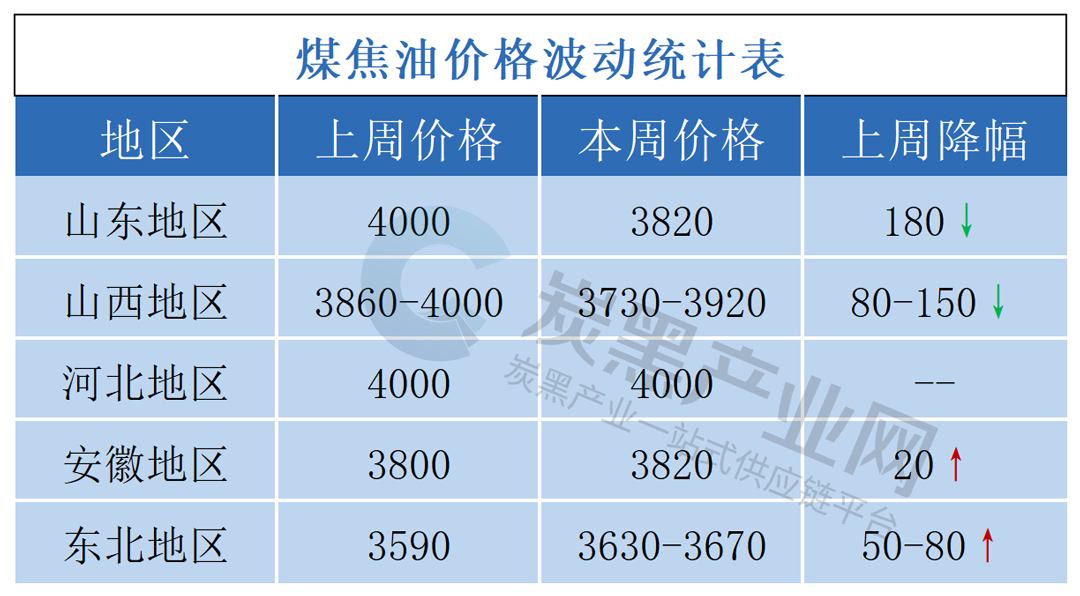 從需求端來看,當前煤焦油深加工和炭黑行業(yè)整體開工負荷均延續(xù)低位,下游對煤焦油實際需求表現(xiàn)暫穩(wěn),但需要注意的是,場內部分業(yè)者認為本周煤焦油低點已至,部分深加工、炭黑廠家以及貿(mào)易商對煤焦油抄底操作開始,所以本周煤焦油新單拍賣價格也表現(xiàn)較為分化,山東地區(qū)有深加工企業(yè)檢修,新單拍賣價格大幅下滑,安徽、山西則有局部反彈,河北地區(qū)則維持穩(wěn)定。