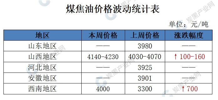 今日,國內(nèi)高溫煤焦油市場新單拍賣鮮少,其中山西地區(qū)繼續(xù)走高。當前上游焦企虧損及庫存不高,繼續(xù)挺價意向較濃,加上下游接貨積極性較好,市場存剛需支撐,煤焦油整體延續(xù)上漲走勢。