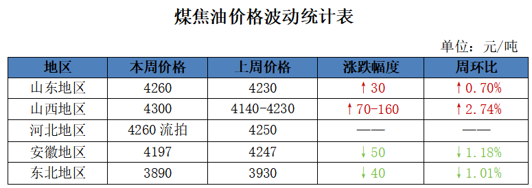 本周,國內(nèi)高溫煤焦油市場(chǎng)拍賣較多,主產(chǎn)區(qū)高溫煤焦油價(jià)格繼續(xù)偏強(qiáng)運(yùn)行。