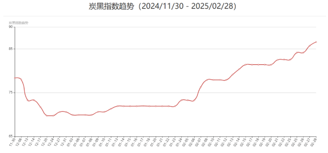 炭黑成本端短期內(nèi),供需關(guān)系依然緊張,煤焦油短期內(nèi)或?qū)⒗^續(xù)維持高位運(yùn)行。目前,炭黑市場供應(yīng)整體平穩(wěn),整體庫存不高,但進(jìn)入三月中旬左右,供暖季結(jié)束,炭黑廠開工可能會(huì)有波動(dòng)。2月份,多數(shù)下游企業(yè)主要以消耗現(xiàn)有庫存為主,不少企業(yè)的原料庫存已處于低位,因此對(duì)炭黑存在一定的補(bǔ)庫需求。月底月初將陸續(xù)商談長期訂單,炭黑市場短期內(nèi)繼續(xù)保持偏強(qiáng)態(tài)勢。