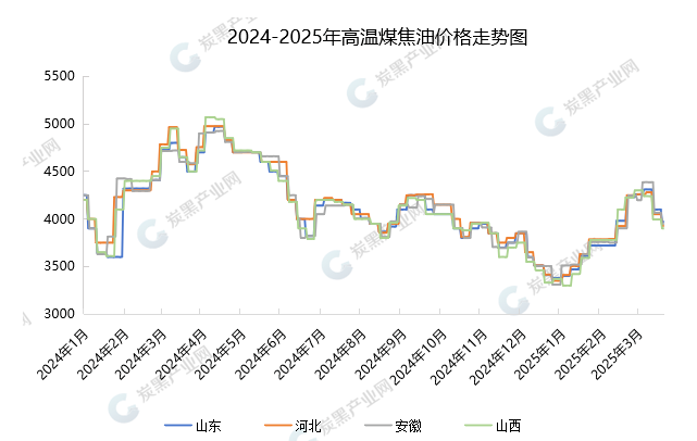 從上游焦企情況來(lái)看,本月焦企經(jīng)歷1輪提降。降幅為50-55元/噸。至3月末,焦炭?jī)r(jià)格歷經(jīng)11輪下調(diào),總降幅為550-605元/噸,期間第12輪提降暫擱置,市場(chǎng)情緒逐漸好轉(zhuǎn)。月內(nèi),煤焦油市場(chǎng)供應(yīng)變化不大,前期局部地區(qū)出現(xiàn)供應(yīng)偏緊的情況。需求端,下游主產(chǎn)品煤瀝青,蒽油等價(jià)格偏弱運(yùn)行,加上深加工開(kāi)工走低,煤焦油需求端支撐不足。