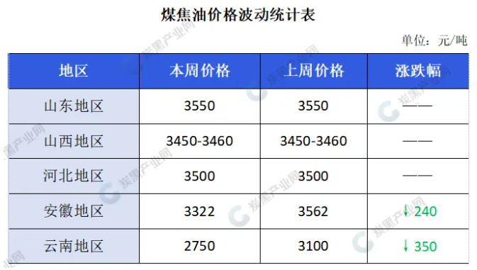當(dāng)前,煤焦油市場供需端利空充斥,一方面,隨著鐵水的增加,焦企開工保持增長。另一方面,原料價(jià)格的下跌以及終端需求的疲軟,使得深加工及炭黑行業(yè)的盈利狀況并未得到改善,下游打壓情緒濃厚,剛需支撐不足,市場煤焦油供應(yīng)增加。今日,在下游工廠采購意愿低迷的情況下,安徽地區(qū)繼續(xù)寬幅下降以及周邊區(qū)域低價(jià)成交,進(jìn)一步加劇了市場的利空氛圍。下游深加工主產(chǎn)品煤瀝青及蒽油的成本支撐進(jìn)一步削弱,價(jià)格或繼續(xù)跟跌煤焦油。