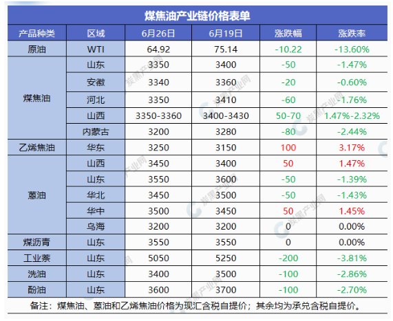 本周高溫煤焦油價(jià)格價(jià)格小幅下滑,綜合來(lái)看,價(jià)格下滑主要原因,一是需求端階段性剛需訂單利好消失,采購(gòu)積極性一般,且目前需求均處于虧損狀態(tài);二是原油價(jià)格持續(xù)下滑,對(duì)市場(chǎng)心態(tài)產(chǎn)生一定影響。