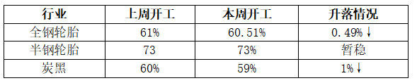 輪胎及炭黑行業(yè)開(kāi)工情況統(tǒng)計(jì)表