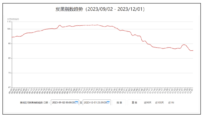 炭黑產(chǎn)業(yè)網(wǎng)根據(jù)市場(chǎng)N330/N220/N550三個(gè)牌號(hào)最新市場(chǎng)成交價(jià)格,并分別按一、二、三線品牌權(quán)重分配計(jì)算后得出今日最新炭黑指數(shù)為90.33,與上周相比本周炭黑指數(shù)呈微揚(yáng)后抑表現(xiàn)。