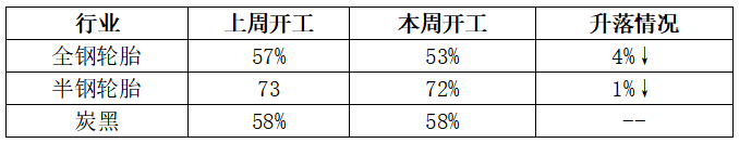 輪胎及炭黑行業(yè)開工情況統計表